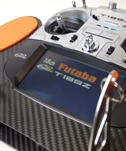 Senderpult i ægte kulfiber plade, passer til Futaba T18SZ, med sammen klappelige bøjler og blødt håndstøtte skum.